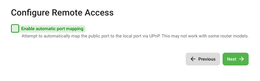 - Uncheck Enable automatic port mapping. Click Next.