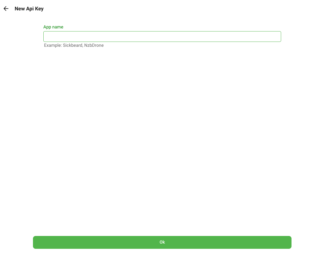 Fill in an App name (e.g. Ombi) and click OK.