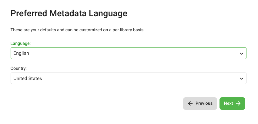- Select your Preferred Metadata Language and Country (