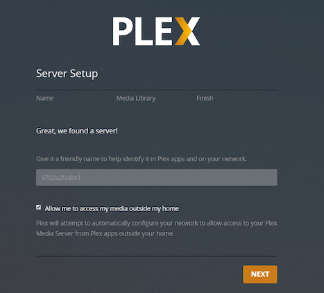 Next screen will show you your server, with a randomly generated name. Give it a friendly name and click "NEXT".